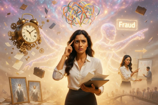 Those who hold unrealistic notions about the qualities needed for success live in constant fear of being "found out" as a fraud despite their exceptional competence. This dread pushes hardworking high achievers push into unsustainable workaholism as defense mechanism to avoid the vulnerability or risks of having their imperfections exposed. This perpetual anxiety causes them to lose touch with deeper emotions, relationships, and genuine fulfillment. That in turn leads to emptiness, resentment, or self-sabotage even as they are on the verage of success.