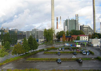 Shielded from the deafening roar and searing heat of Paper Machine No. 4, factory foreman Reino Mustonen watches from his glassed-in office