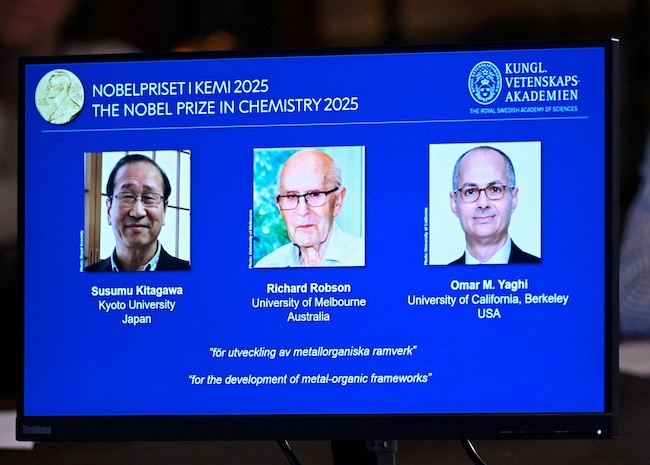 Susumu Kitagawa, Richard Robson and Omar Yaghi developed highly porous molecular structures capable of absorbing vast amounts of carbon dioxide or other toxic gases.