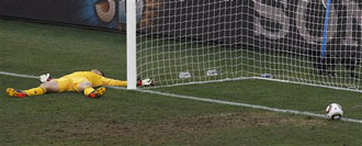 The game on the line, Luis Suarez sidestepped two defenders in the driving rain and struck a right-footed shot from the edge of the penalty ...