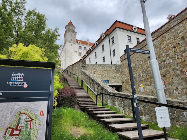 These steps lead up toward the west side of the stately Bratislava Castle.