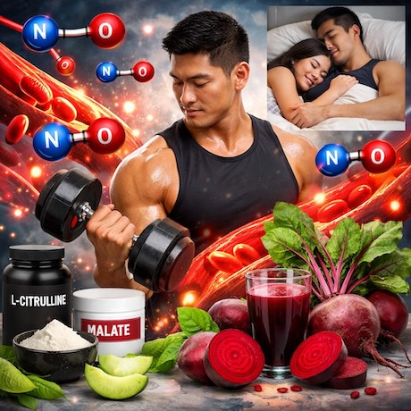 L-Citrulline Malate is arguably the gold standard for NO supplementation right now. L-citrulline is an amino acid that your body converts into L-arginine more efficiently than taking L-arginine directly — and importantly, it does so inside the kidneys before it ever reaches the bloodstream, bypassing some of the digestive issues that make straight L-arginine hard to tolerate. Doses of around 3 to 6 grams per day are well-studied, and if you're taking it for exercise performance, about 30 to 60 minutes before a workout is the sweet spot.